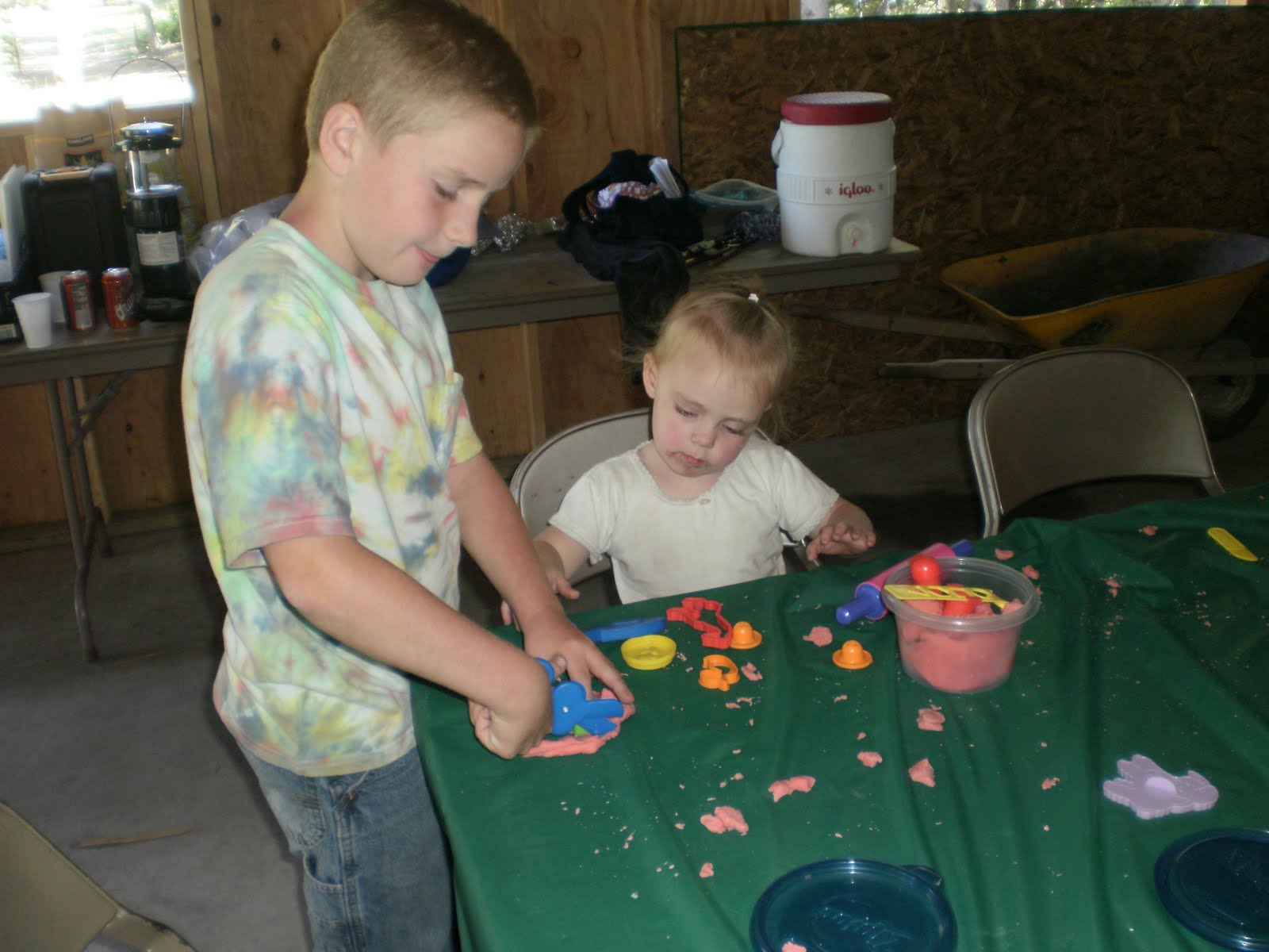 During the "doubles" games, play-dough was out for the 3 youngest kids to play with. Clara didn't want to do it while she could watch the silly hat game. But when that was over, she happily played with the play-dough for about 20 minutes.
